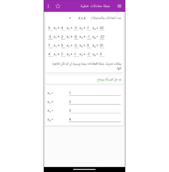 حالياً، تحل هذه الأداة معادلتين بمجهولين حتى ثمان معادلات بثمانية مجاهيل.